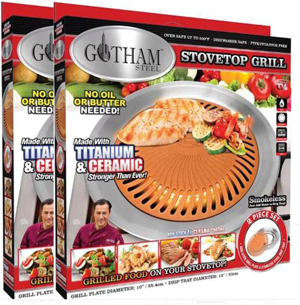 ¡Asá tus comidas favoritas de forma saludable en tu estufa, sin humo ni desorden! El Gotham Steel Stovetop Grill te permite cocinar a la parrilla en interiores (o exteriores) usando tu estufa eléctrica, de gas o propano. Su secreto está en el diseño: cuenta con una bandeja de goteo de acero inoxidable que se llena de agua para atrapar la grasa y el jugo, eliminando por completo el humo y las salpicaduras durante la cocción. Simplemente calentá, ¡y listo! Su superficie de alta calidad es antiadherente, lo que la hace ideal para cocinar sin grasas añadidas y garantiza una limpieza extremadamente fácil. Además, es apta para horno hasta 500 °F. ¡Comprá hoy Gotham Steel y disfrutá del sabor de la parrilla todo el año!